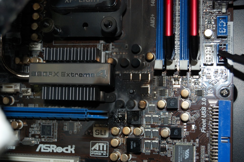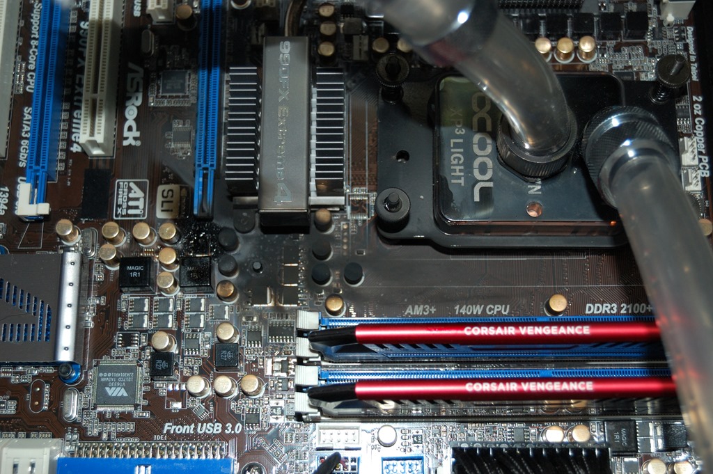 So thankfully the only losses were the graphics cards and the mainboard – the latter of which is already replaced simply because I needed it to make sure the CPU and memory chips weren’t dead as well, as well as set my wife up with a working system until I can start building out a water cooling loop again. That will happen when I get another CPU water block, as I’ll build out a CPU water loop at least since the stock AMD cooler sounds like a blow drier.