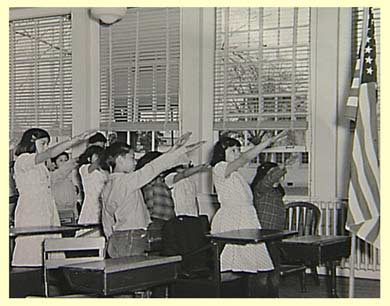 In 1940 the Supreme Court of the United States actually backed these laws, upholding in the case Minersville School District v. Gobitas, 310 US 586 (1940), laws that required students to salute the flag and recite the pledge of allegiance. Jehovah’s Witnesses are compelled against doing such an action as they consider it a form of idolatry.