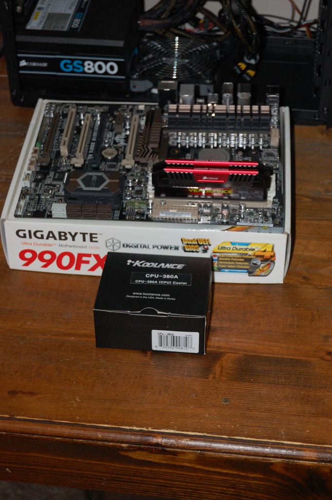 So after getting the hard drives mounted, I turned to undoing much of the cabling in the case. I wanted to get a lot of it out of the way before going after the graphics cards. Once those were out, I turned to the ThermalTake water cooler, then to the mainboard. The graphics cards I set aside on the 750D, while the mainboard I set on another mainboard box to prepare it for work.