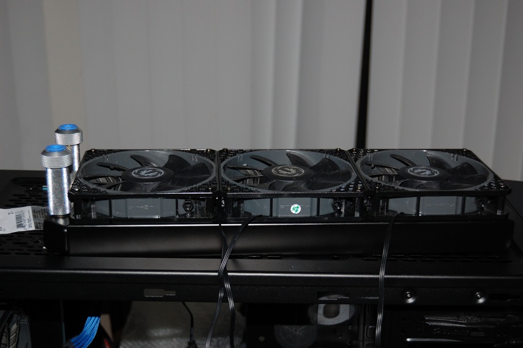 Once the radiators were flushed, it was time to get the fans and fittings and install them into the case, after testing the new 140mm fans (spoiler: they work fine).