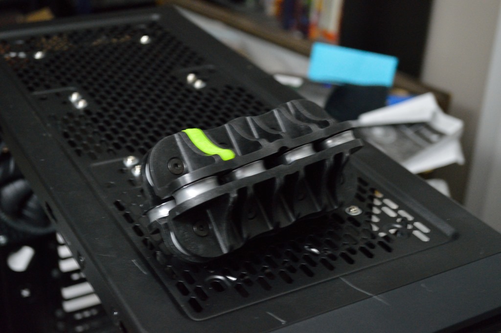 I need to buy a miter box or something similar for cutting the short pieces of tubing for going between the graphics cards. I bought the hacksaw for that on my last trip to Harbor Freight. Unfortunately the only miter box they have comes with a saw, and as I’m not going to be hacking lumber any time soon, I don’t need the combo deal. I should be able to find just the miter box without the saw at Home Depot or Lowe’s.