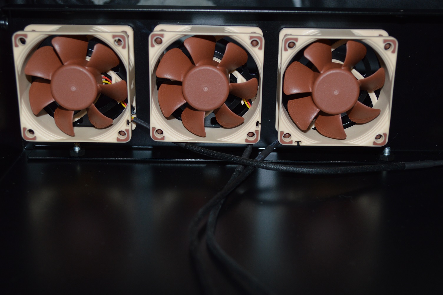 I selected the fans in question because I knew they’d be silent. Noctua is one of the best companies when it comes to quiet fans — others come close, but Noctua continually wins out. The color scheme of the fans is why I didn’t buy 4x80mm Noctuas for the front — that and the price (typically around 15 USD each). At least the 60mm Noctuas aren’t going to be noticeable unless you go looking for them.