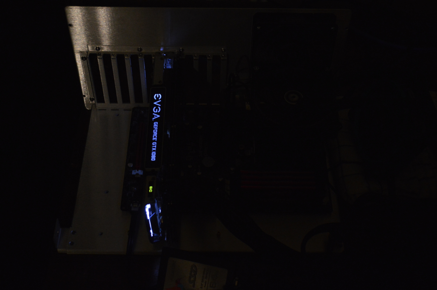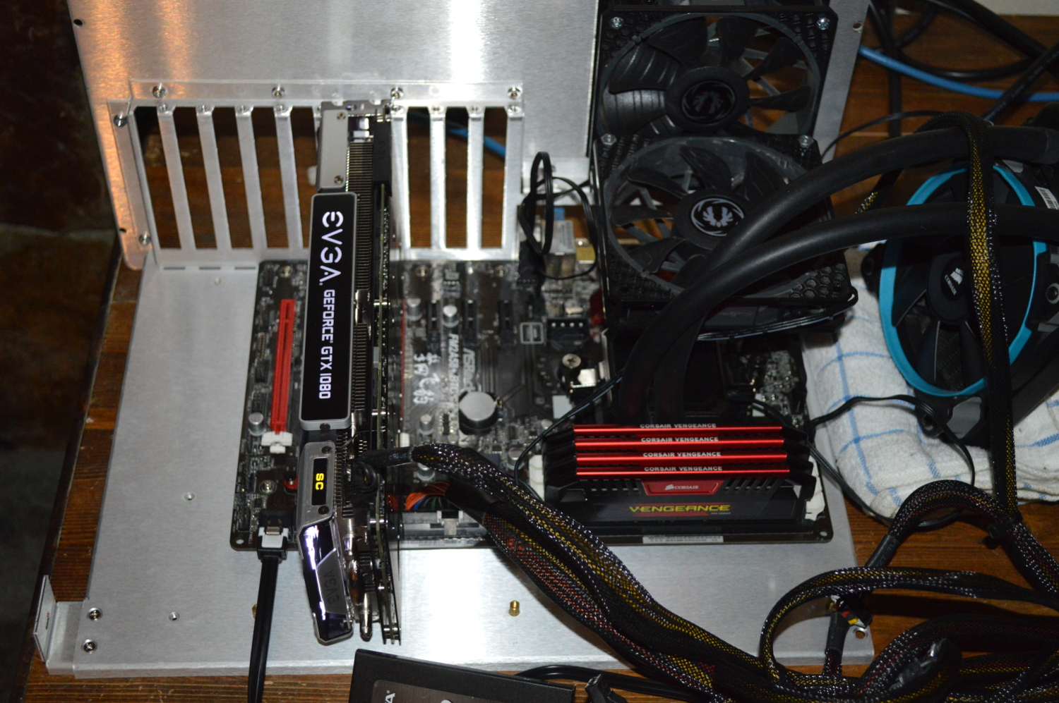 I needed to redo the cabling anyway as the GTX 1080 needed only one PCI-Express power cable. And then once it was all assembled, it was a matter of bleeding the loop, then turning it back over to my wife after doing some temperature testing.