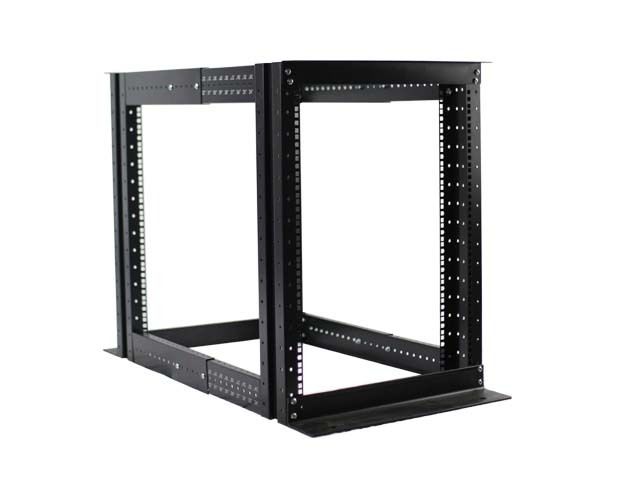 I have the frame assembled and have been using it to hold several servers along with my 10GbE switch. BUT… it won’t hold slide rails! The M6 threaded screw holes are the proper EIA-310 spacing, but there isn’t enough spacing between the corner posts to fit a standard-width server with standard slide rails. It has 17.5″ of clearance instead of the EIA-310 standard 17.75″ (450mm).