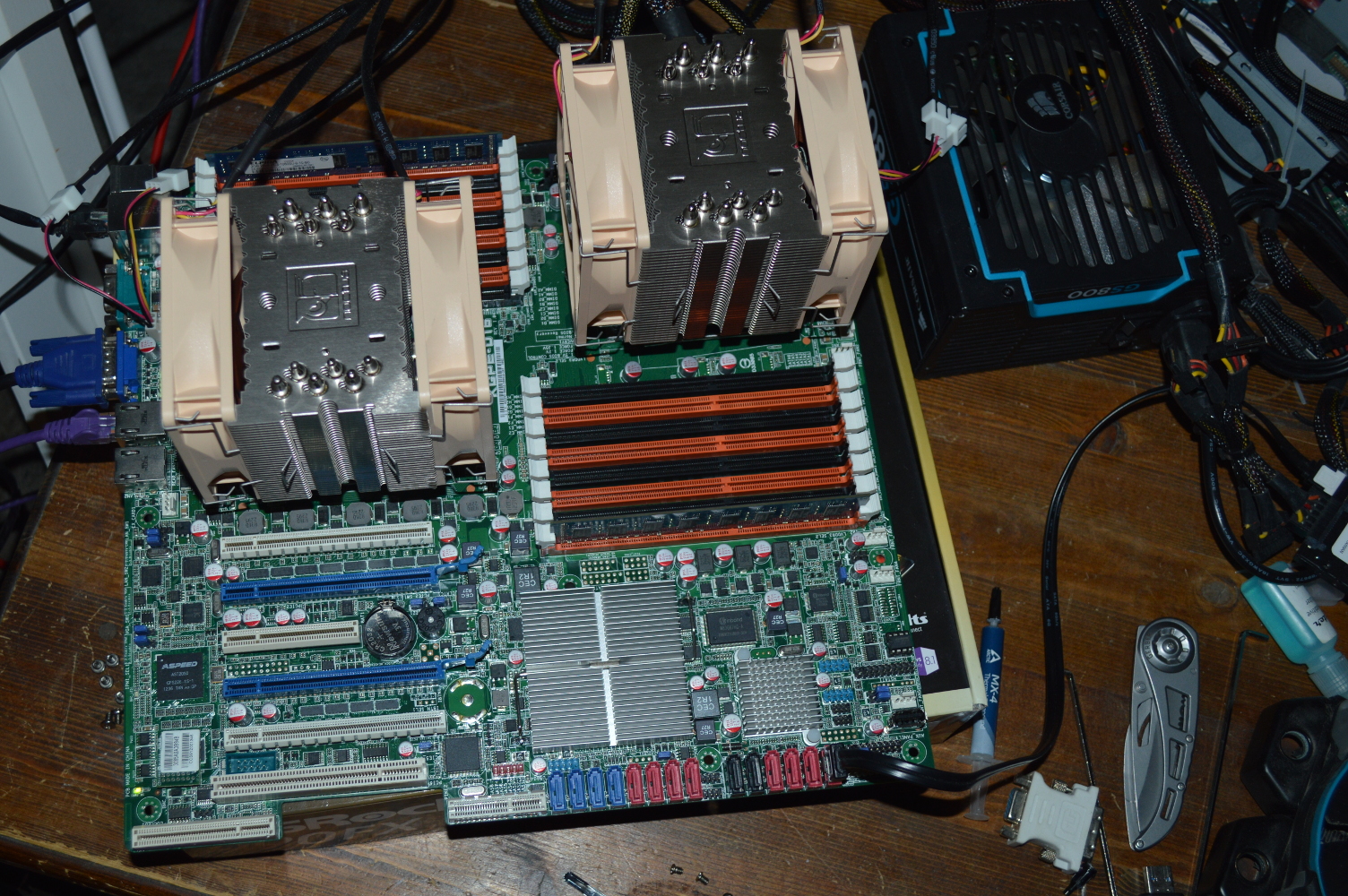 The dual Xeon E5520 gives 16 logical processors – 4 cores each with HyperThreading. The dual Opteron 6278 gives 32 cores, more than doubling my current processor capacity – HyperThreading isn’t the same thing has having two physical cores.