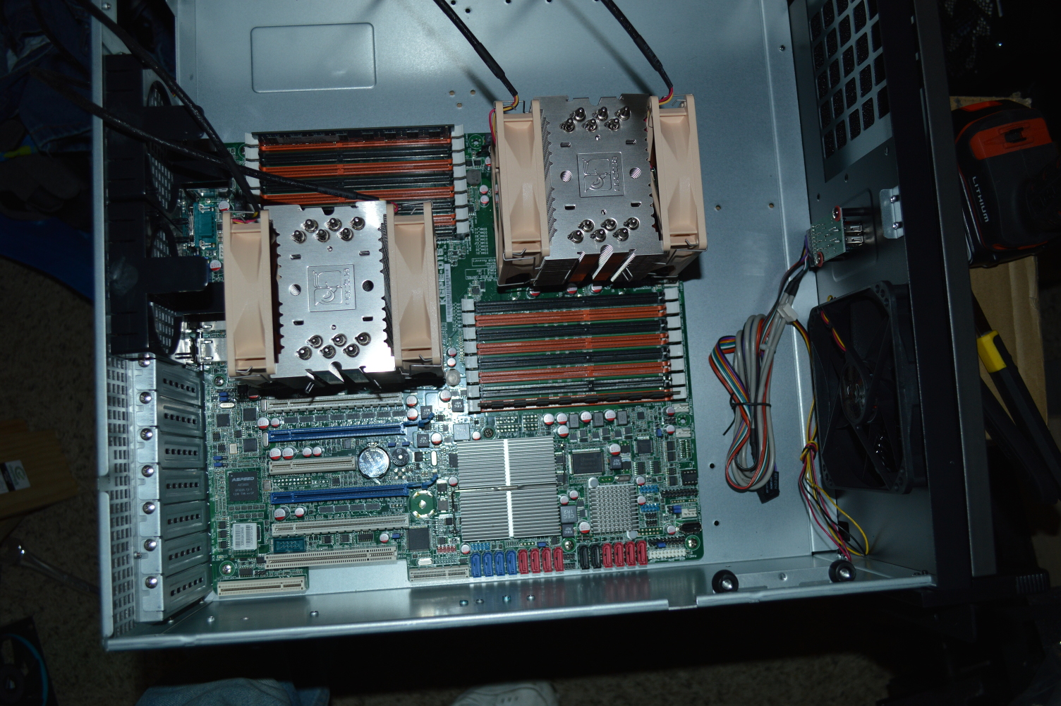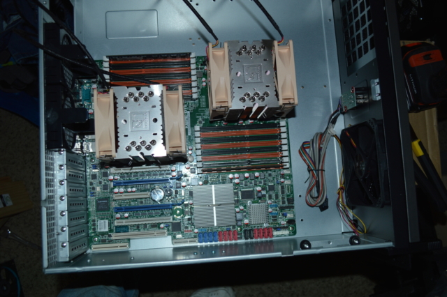 Due to the layout of the mainboard and the coolers I chose, the chassis basically had to be stripped down to practically nothing. And upon noticing that standoffs were needed for the mainboard, I was glad to go with the 92mm fan Noctua cooler instead of the 120mm fan cooler. Again, don’t use the 120mm version in a 4U chassis unless you can guarantee clearance.