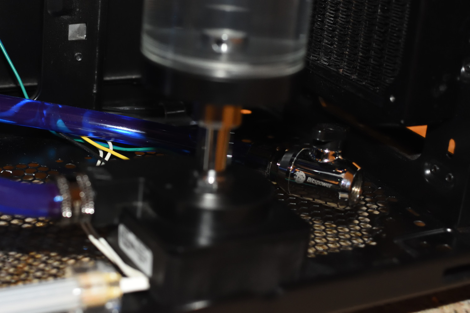 Before the overnight cleaning with Primochill System Reboot, I attempted to flush the system with distilled water. It was during the push flush that I discovered a couple fittings had developed leaks as well. Both of them were fittings on the pump and drain setup. That needed to be replaced, so I opted for a much simpler setup.