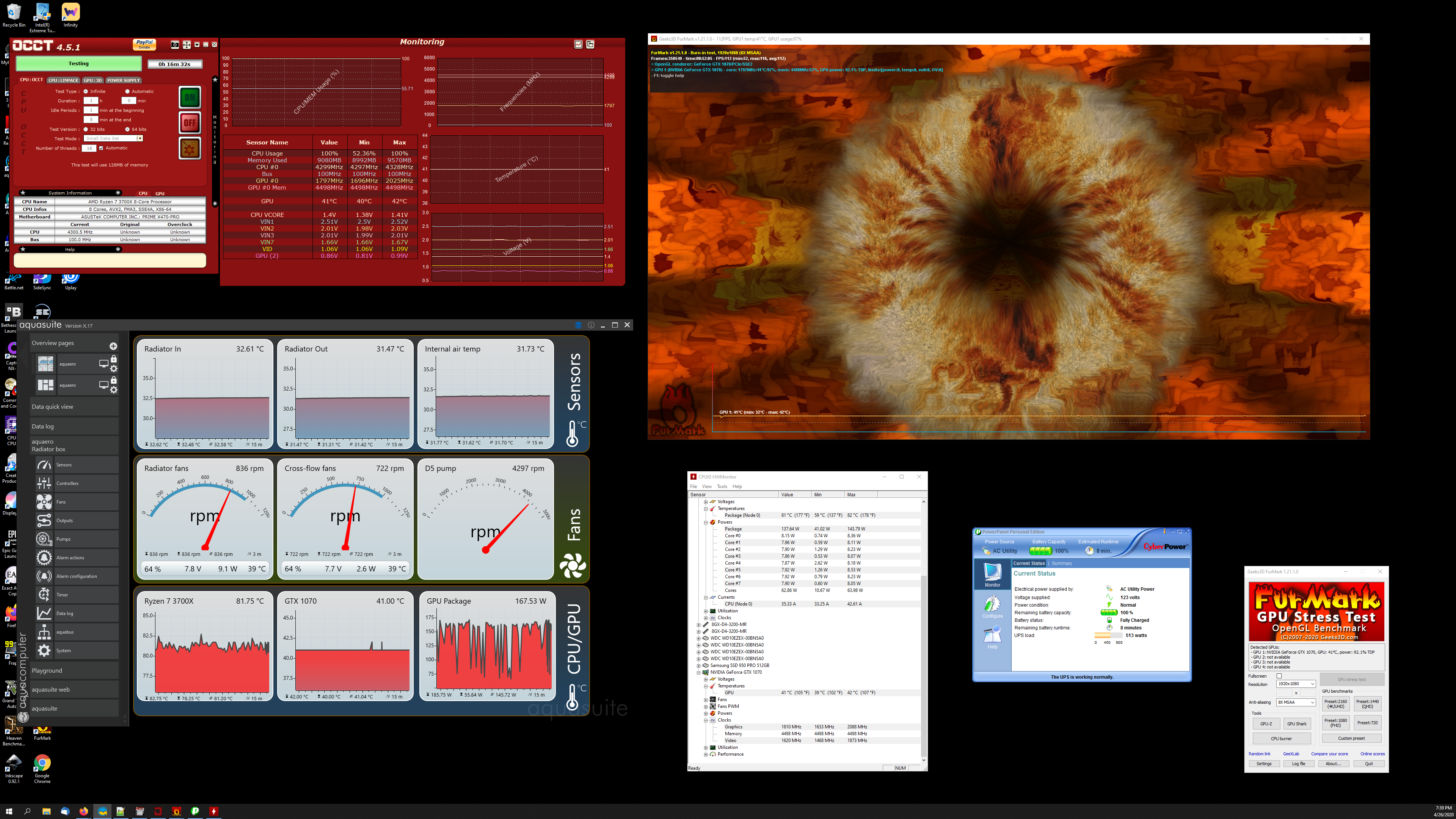 I added in the PowerPanel image to show how much power my entire system (including my dual 4K televisions) is drawing from the wall under load. It peaks at a little over 500W.