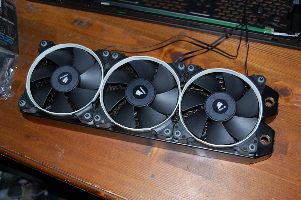 And as you might be able to discern from the picture, the case is upside down on the table. That was intentional as it gave me the best way to see how the radiator would look without having to try to hold it in place. Plus, the radiator didn’t come with any short screws for mounting the radiator to the case, the radiator has M3 threads, and I didn’t have any short M3 screws sitting around either, so it was kind of out of necessity. Needless to say, Home Depot was on my list of places to go the next morning.